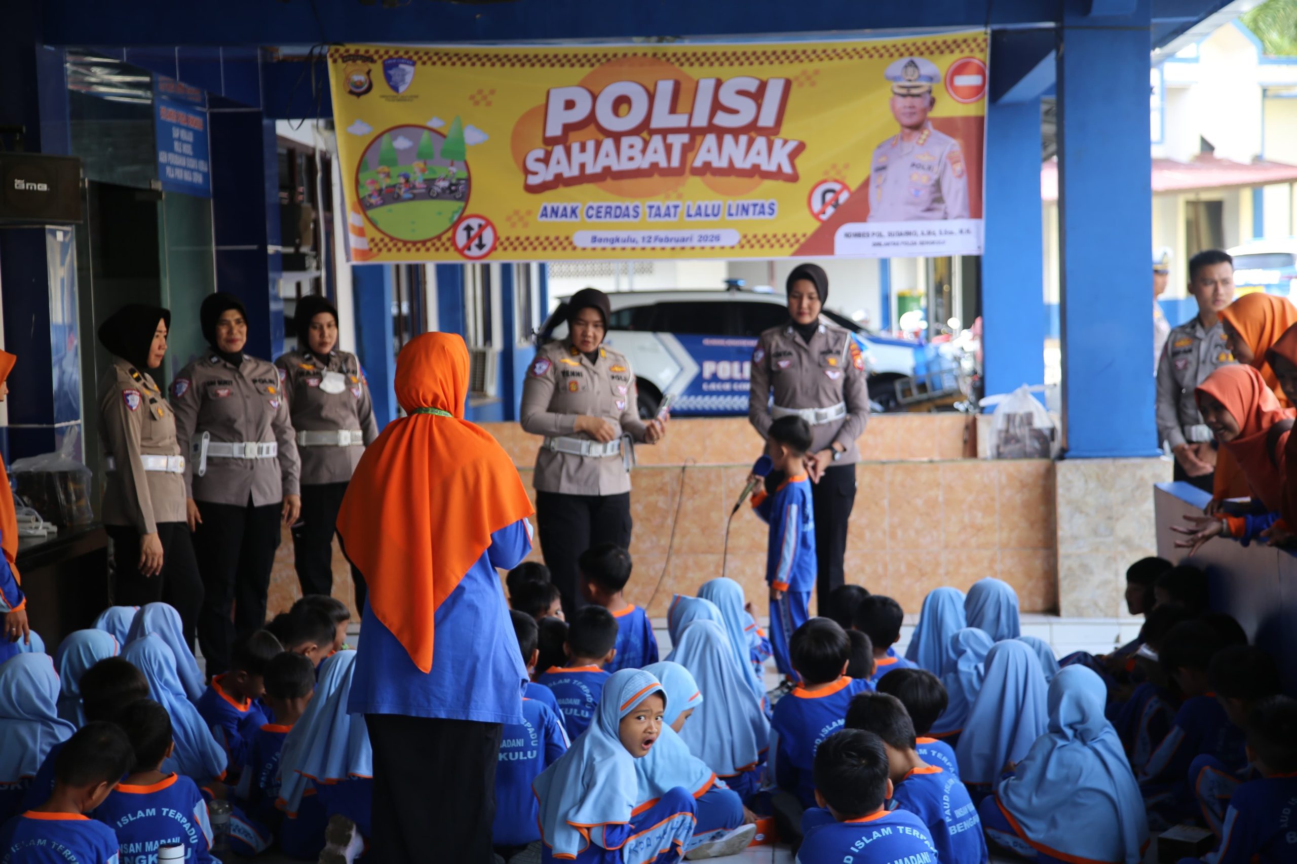 Bengkulu – Dalam upaya menanamkan budaya tertib berlalu lintas sejak usia dini, Direktorat Lalu Lintas (Ditlantas) Polda Bengkulu melalui Subdit Kamseltibcarlantas melaksanakan kegiatan Polisi Sahabat Anak (Polsanak) bersama peserta didik PAUD Islam Terpadu Insan Madani Kota Bengkulu, Kamis (12/02/26), bertempat di Selasar Ditlantas Polda Bengkulu.