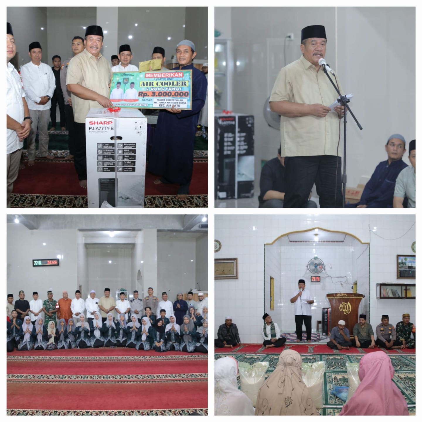 Pada kesempatan tersebut, Pemerintah Kabupaten Asahan menyerahkan bantuan uang tunai sebesar Rp3.000.000 dan satu unit air cooler kepada pengurus rumah ibadah serta santunan kepada 15 anak yatim dan 10 kaum dhuafa. Selain itu, Bupati Asahan juga menyerahkan infaq keluarga sebesar Rp10.000.000 sebagai bentuk kepedulian terhadap kegiatan keagamaan dan sosial masyarakat selama bulan Ramadhan.(surya)