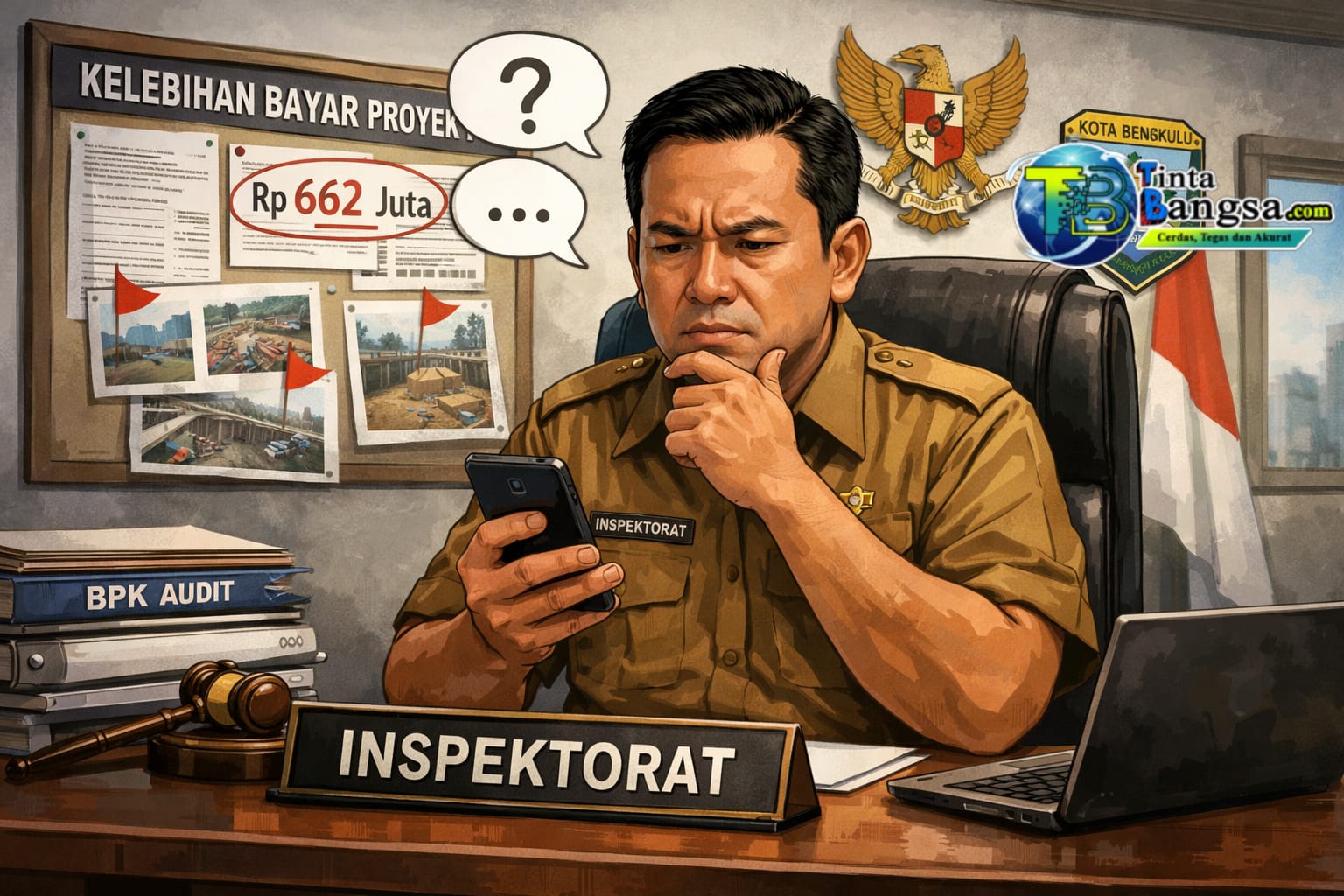 BENGKULU, tintabangsa.com – Hingga kini, Plt Inspektur Inspektorat Kota Bengkulu belum memberikan penjelasan resmi terkait temuan kelebihan pembayaran proyek di lingkungan Dinas PUPR Kota Bengkulu Tahun Anggaran 2024 senilai Rp662.831.530,49 sebagaimana diungkapkan oleh Badan Pemeriksa Keuangan (BPK).
