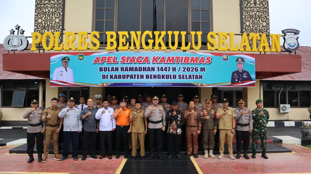 Manna, 24 Februari 2026 – Polres Bengkulu Selatan melaksanakan Apel Siaga Kamtibmas dalam rangka menciptakan situasi keamanan dan ketertiban masyarakat (kamtibmas) yang aman dan kondusif selama Bulan Suci Ramadan 1447 H/2026 M. Kegiatan tersebut digelar di Lapangan Apel Mapolres Bengkulu Selatan, Selasa (24/2/2026) pagi.