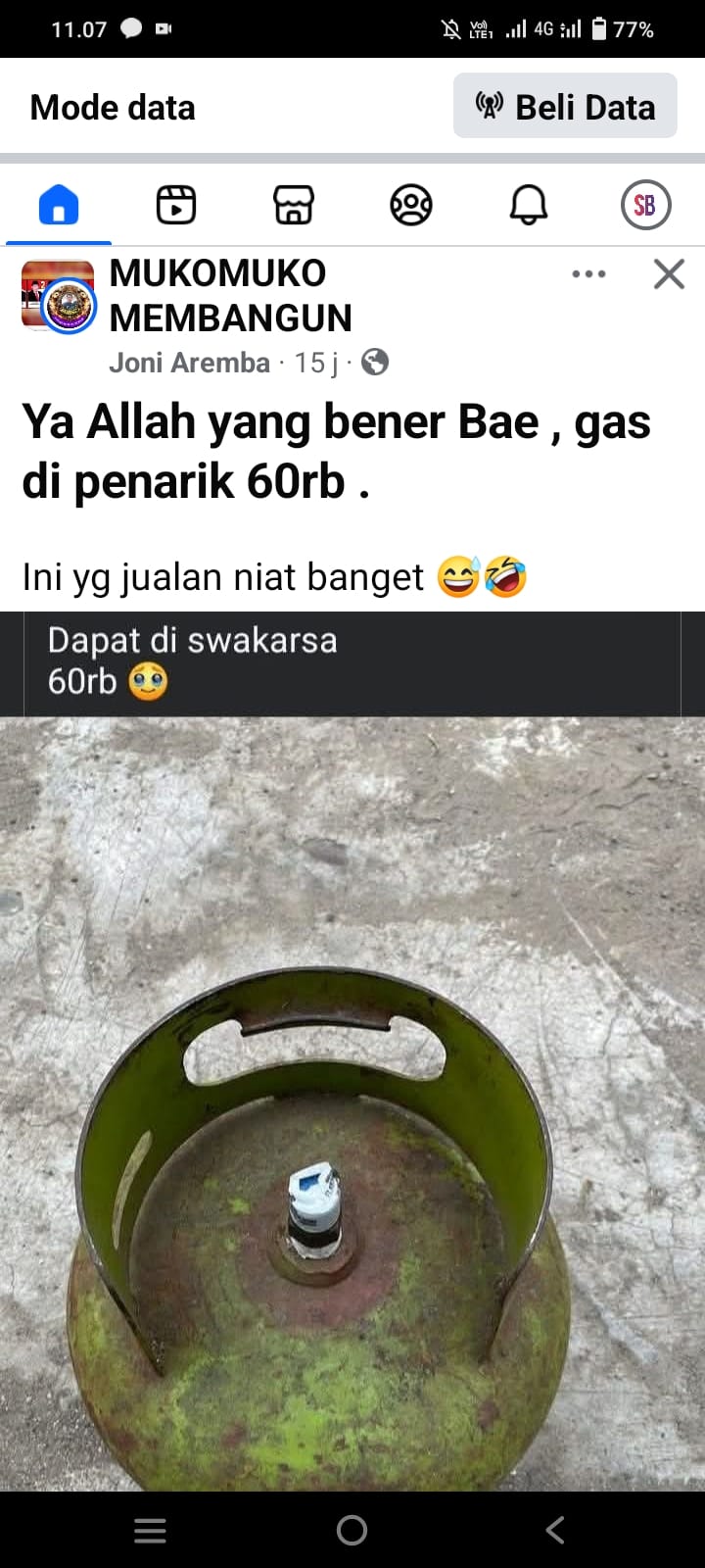 Mukomuko, tintabangsa.com – Beredar isu di media sosial terkait harga gas LPG 3 kilogram di kios eceran wilayah Trans Swakarsa, Kecamatan Penarik, Kabupaten Mukomuko, yang disebut-sebut mencapai Rp60.000 per tabung. Informasi tersebut muncul di grup Facebook Mukomuko Membangun yang diunggah akun atas nama Joni Aremba, Kamis (27/2/2016).