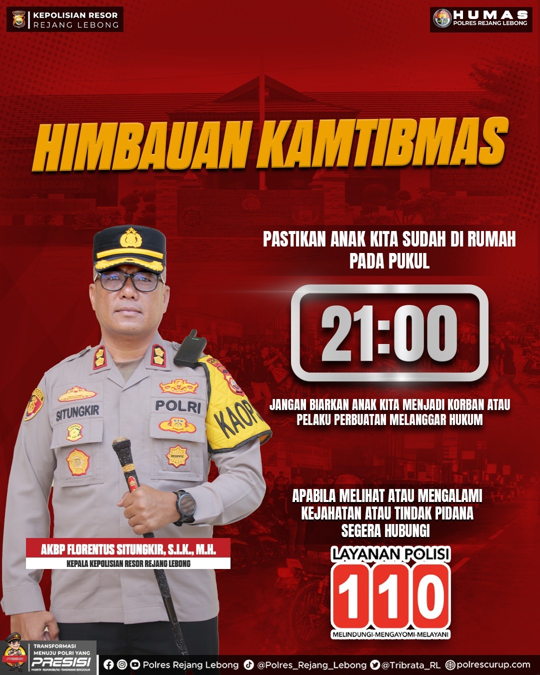 Melalui imbauan resmi yang disampaikan Kapolres Rejang Lebong, Florentus Situngkir, S.I.K., M.H., masyarakat diminta untuk memastikan anak-anak sudah berada di rumah paling lambat pukul 21.00 WIB.
