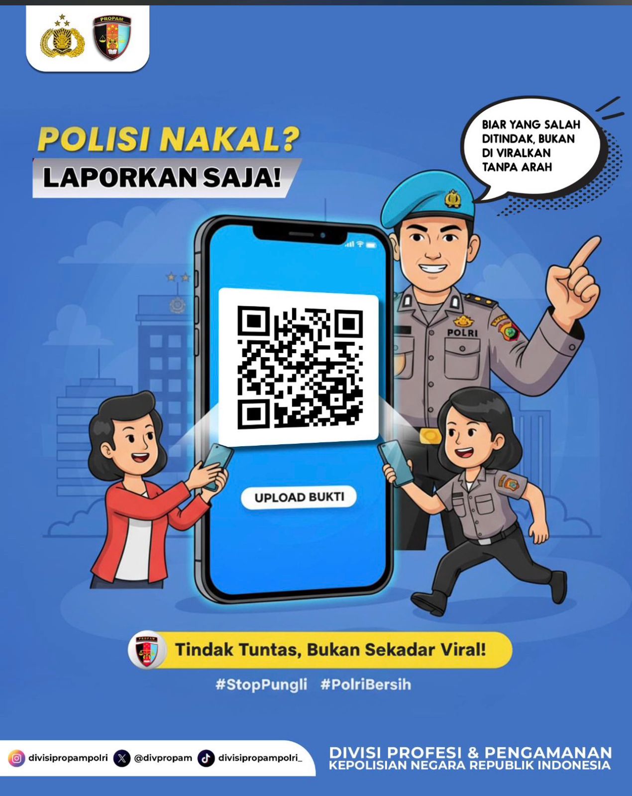 Melalui kampanye bertajuk “Polisi Nakal? Laporkan Saja!”, Divisi Profesi dan Pengamanan Polri menegaskan komitmennya dalam menjaga integritas serta profesionalisme institusi Polri.