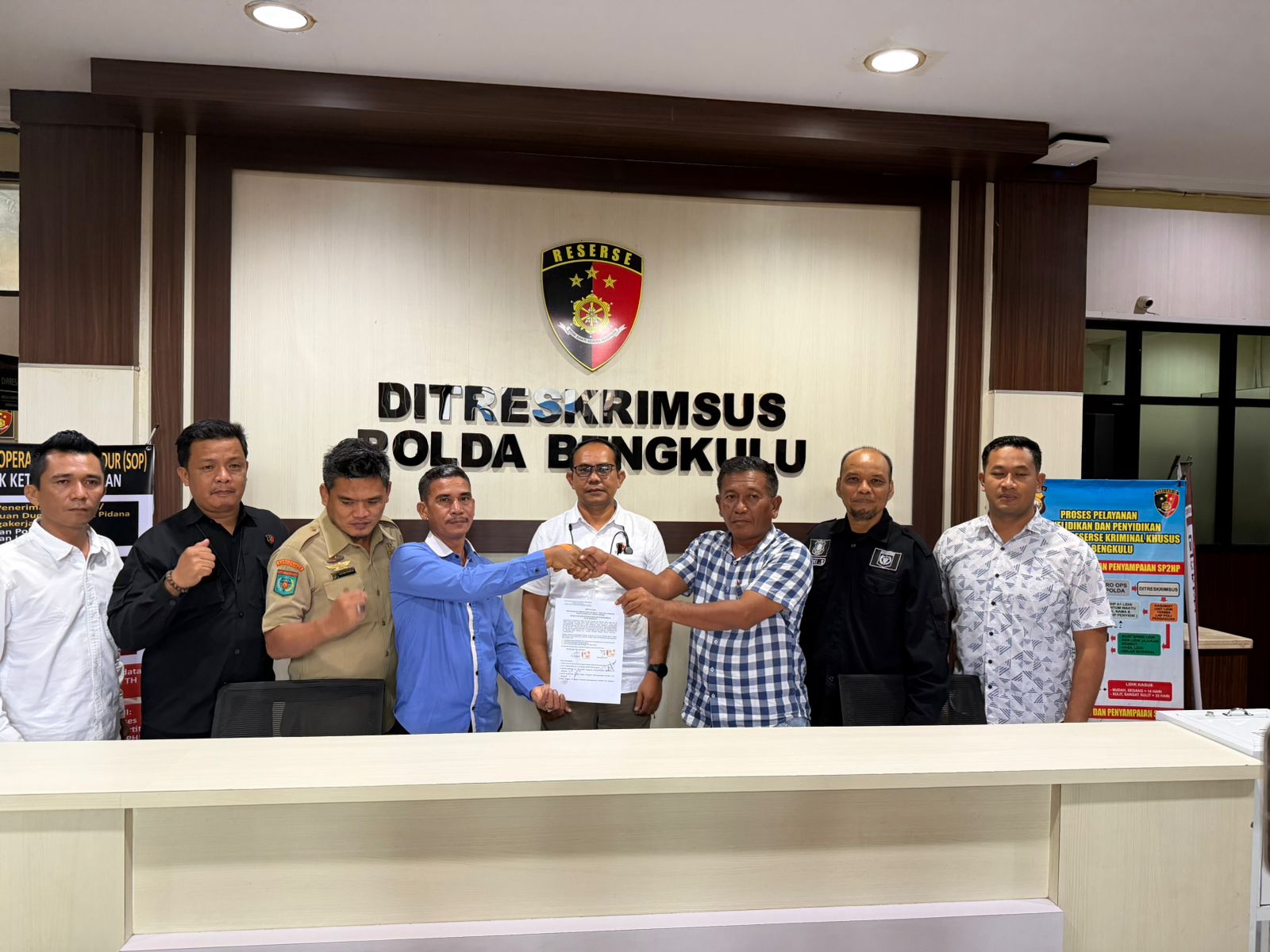 Dikatakan Dirreskrimsus Polda Bengkulu, Kombespol. Aris Tri Yunarko melalui Kasubdit Tindak Pidana Tertentu (Tipidter) Kompol. Mirza Gunawan, bantuan fasilitas Desk Ketenagakerjaan yang dilakukan Polda Bengkulu ini merujuk pada Surat Kepala Dinas Nakertrans Provinsi Bengkulu Nomor : 340/DKKTRANS-03/2026, tanggal 23 Februari 2026, perihal Permohonan Bantuan Fasilitas Desk Ketenagakerjaan atas Pengaduan berinisial SP pada 18 November 2025.