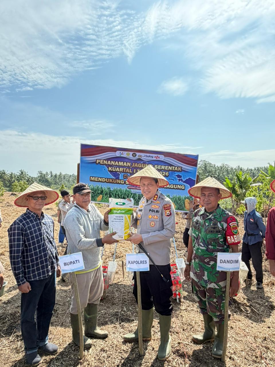 “Pada Kuartal I tahun 2026 ini, penanaman jagung di wilayah hukum Polres Kaur dilaksanakan secara serentak dengan total luas lahan mencapai 41 hektar. Selain dilaksanakan oleh Polres Kaur, kegiatan ini juga dilakukan oleh 8 Polsek jajaran yang turut melakukan penanaman jagung di wilayah masing-masing,” ujar Kapolres.