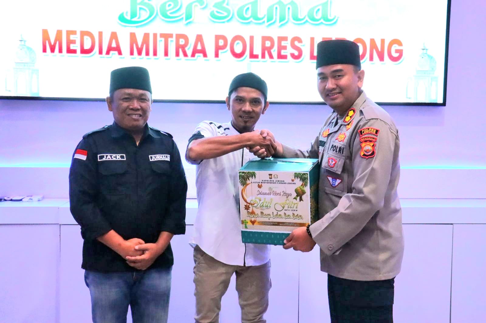 Dalam kesempatan tersebut, Kapolres Lebong juga menyerahkan bingkisan secara simbolis kepada perwakilan media sebagai bentuk apresiasi atas dukungan dan kerja sama yang selama ini telah terjalin dengan baik antara Polres Lebong dan insan pers.