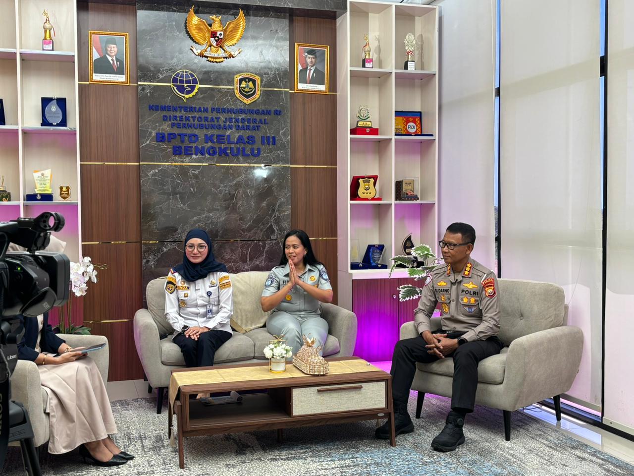 Dialog tersebut menghadirkan sejumlah narasumber dari instansi terkait yang memiliki peran dalam mendukung kelancaran dan keselamatan transportasi selama periode mudik Lebaran. Dalam kegiatan tersebut, Kepala Kantor Wilayah Jasa Raharja Bengkulu, Fitri Agustina, S.Kom., MBA., AAIK, hadir sebagai narasumber bersama Direktur Lalu Lintas Polda Bengkulu dan Kepala BPTD Kelas III Bengkulu.