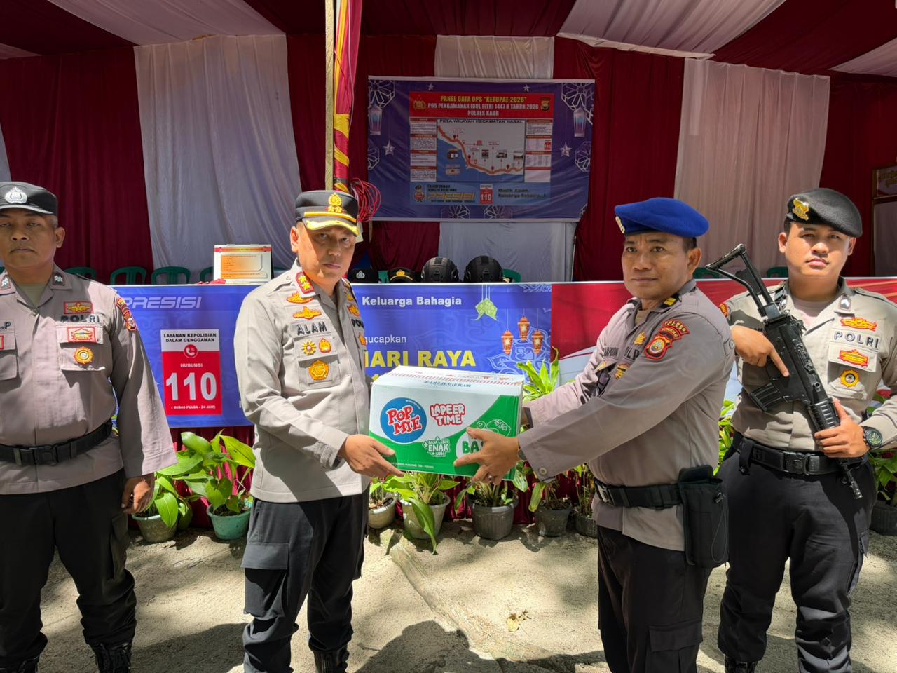 Dalam kunjungannya, Kapolres Kaur juga memberikan bingkisan kepada personel yang sedang melaksanakan piket sebagai bentuk apresiasi dan dukungan moril atas dedikasi anggota yang bertugas memberikan pelayanan kepada masyarakat selama pelaksanaan Operasi Ketupat Nala 2026.
