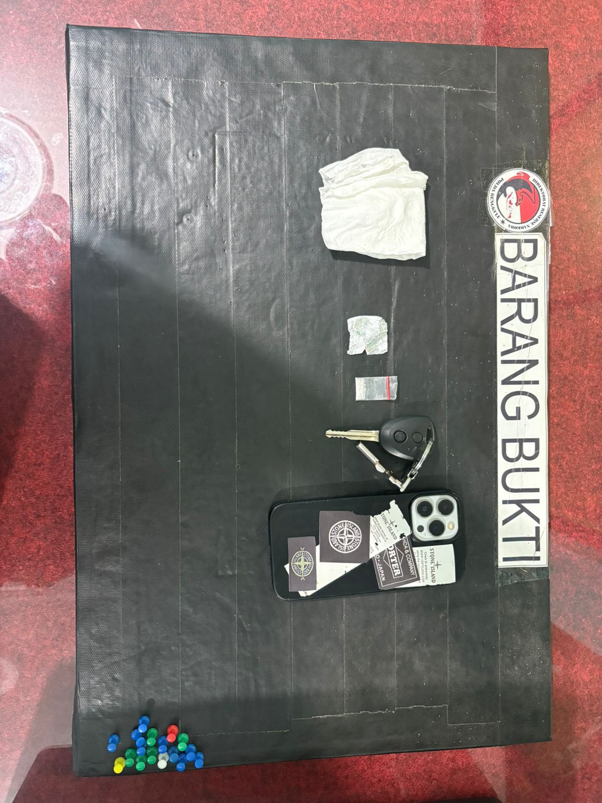 Barang bukti yang disita antara lain 1 paket sabu, 1 unit handphone iPhone warna putih, dan 1 unit mobil Xenia warna hitam. “Kami akan melakukan pengembangan lebih lanjut untuk mengungkap jaringan narkoba lainnya,” ujar Kompol Rahmat Hadi F.