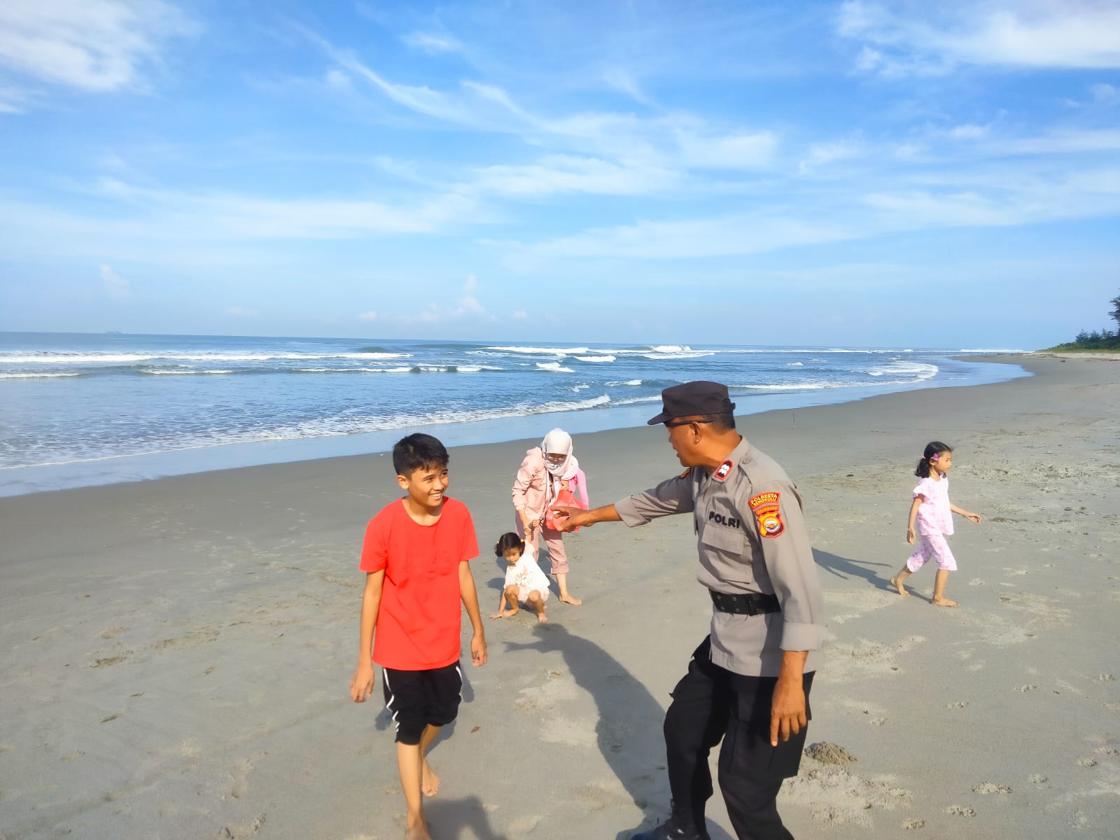 Kegiatan patroli tersebut dilaksanakan oleh personel Pospam Pantai Zakat, yakni IPDA Tri Widodo dan AIPTU Purwanto. Patroli dilakukan dengan menyisir area pesisir pantai sekaligus memantau aktivitas wisatawan yang tengah menikmati suasana pantai pada akhir pekan.