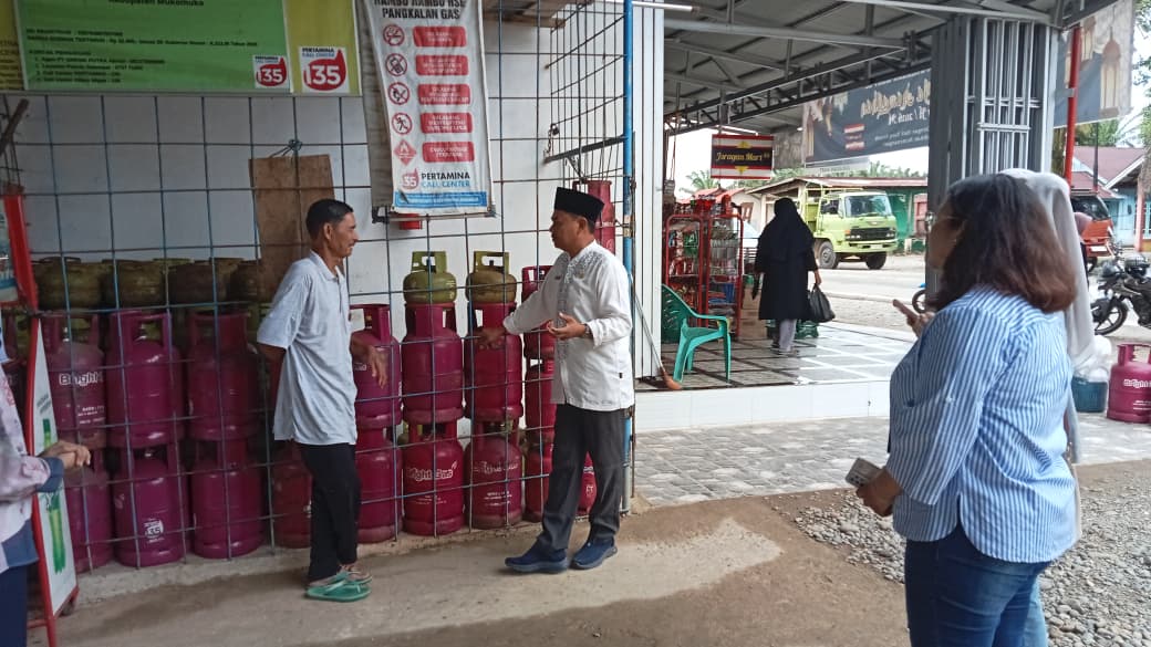 Sapriadi, SH, tiba di pangkalan LPG 3 Kg, milik Swardi, di Desa Pulau Baru didampingi oleh para agen dan staf Disperindagkop -UKM Mukomuko.