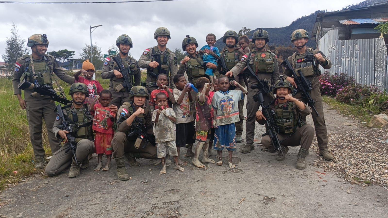 Patroli Satgas Ops Damai Cartenz di Intan Jaya: Interaksi dengan Warga dan Anak-anak di Sugapa