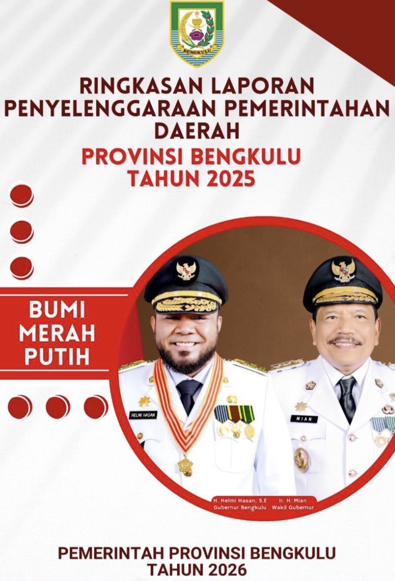 Bengkulu, Tintabangsa.com,-Pemerintah Provinsi Bengkulu menunjukkan capaian positif dalam pelaksanaan arah pembangunan yang tertuang dalam Rencana Pembangunan Jangka Menengah Daerah (RPJMD). Hal ini tergambar dalam Ringkasan Laporan Penyelenggaraan Pemerintahan Daerah (LPPD) Tahun 2025 yang dirilis Pemprov Bengkulu.