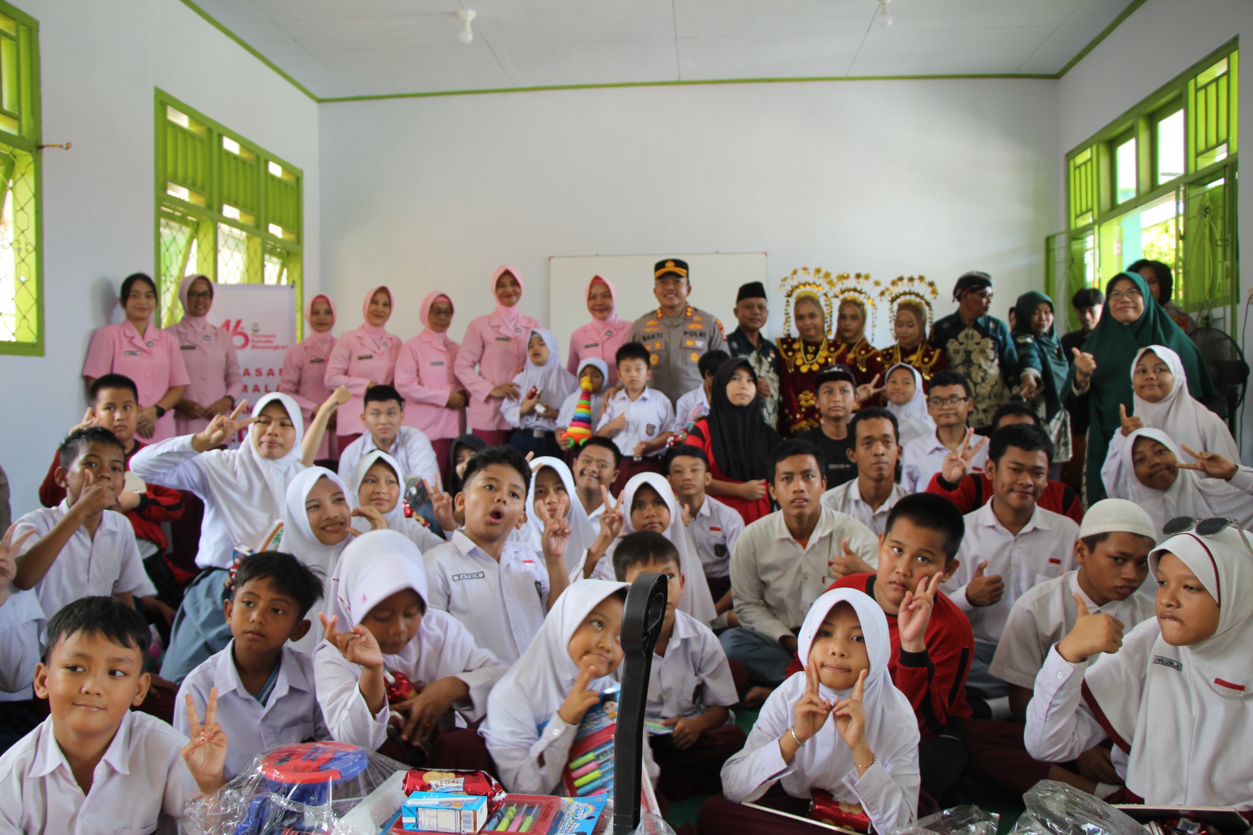 Suasana penuh keakraban terlihat saat Kapolres, Ketua Bhayangkari, serta PJU Polres Bengkulu Utara berinteraksi langsung dengan para siswa, memberikan semangat dan berbagi kebahagiaan.