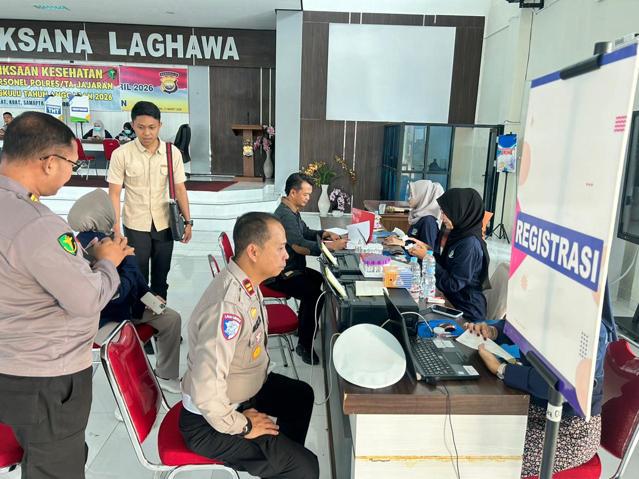 MANNA – Dalam rangka menjaga kesiapan dan kebugaran jasmani personel dalam pelaksanaan tugas kepolisian, Polres Bengkulu Selatan menggelar kegiatan Pemeriksaan Kesehatan (Rikkes) Berkala bagi seluruh personel Polri dan ASN, Kamis (1/4/2026). Kegiatan tersebut dilaksanakan mulai pukul 08.00 WIB sampai dengan selesai bertempat di Aula Gedung Wira Lestari (GWL) Polres Bengkulu Selatan.