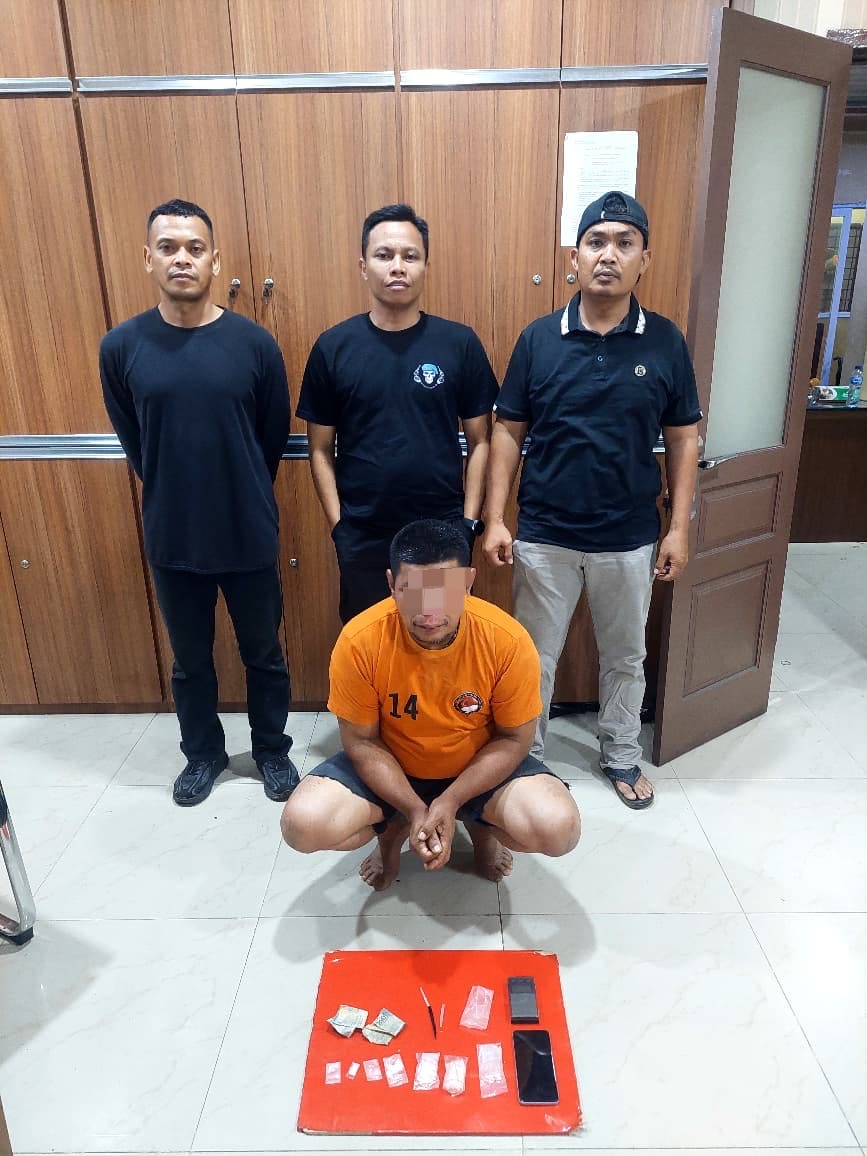 Dalam operasi tersebut, petugas berhasil mengamankan YM (49), warga setempat. Dari tangan tersangka, polisi menyita barang bukti berupa 4 plastik klip sabu seberat bruto 2,63 gram, plastik klip kosong, pipet skop, timbangan digital, satu unit handphone merek Oppo, uang tunai Rp4.000, serta tas sandang hitam yang digunakan untuk menyimpan barang haram tersebut.