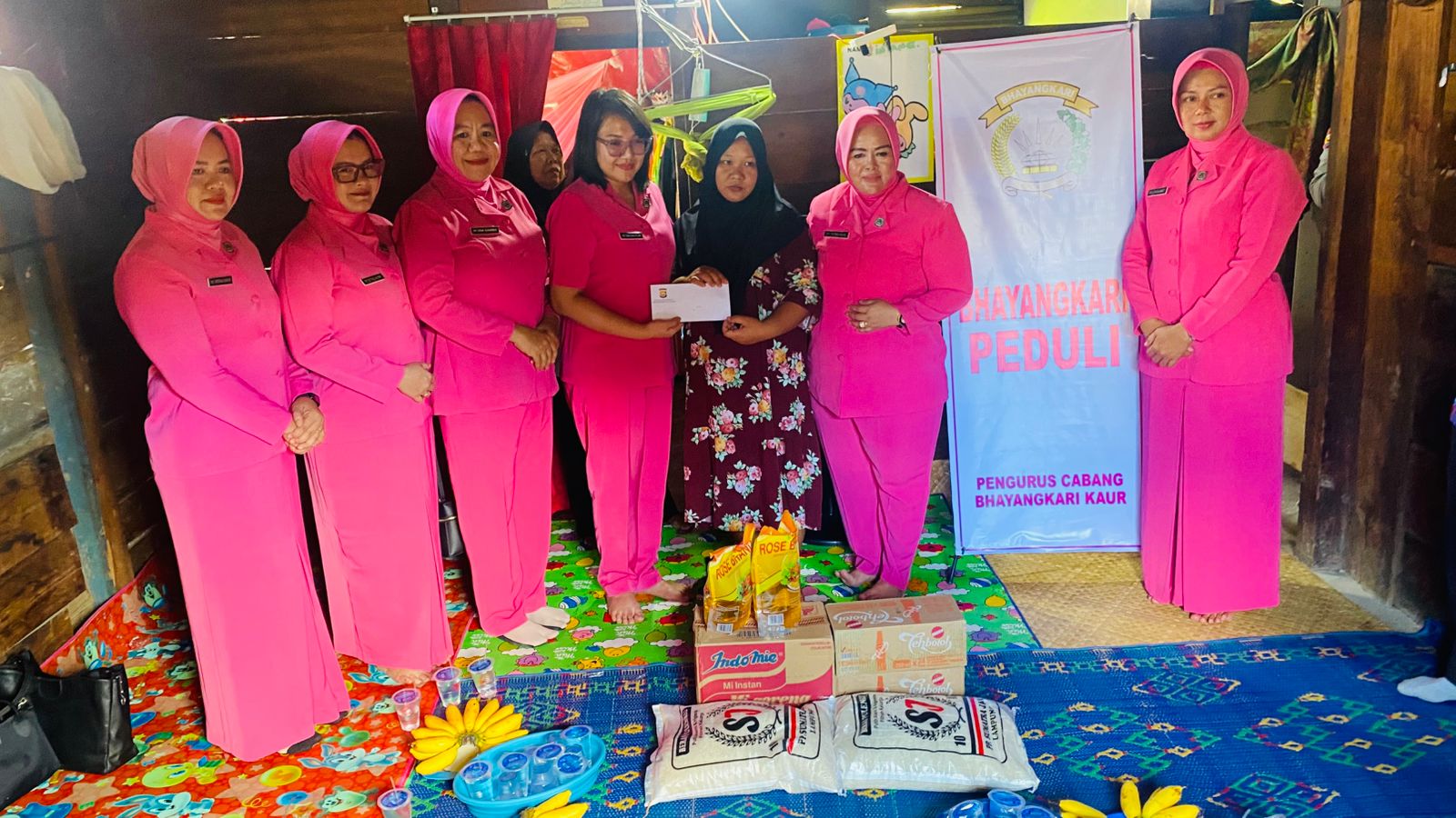 Ny. Daulika Alam menyampaikan bahwa kehadiran Bhayangkari tidak hanya sebagai bentuk kepedulian, namun juga untuk memastikan bahwa korban tidak merasa sendiri dan tetap mendapatkan dukungan dari berbagai pihak.