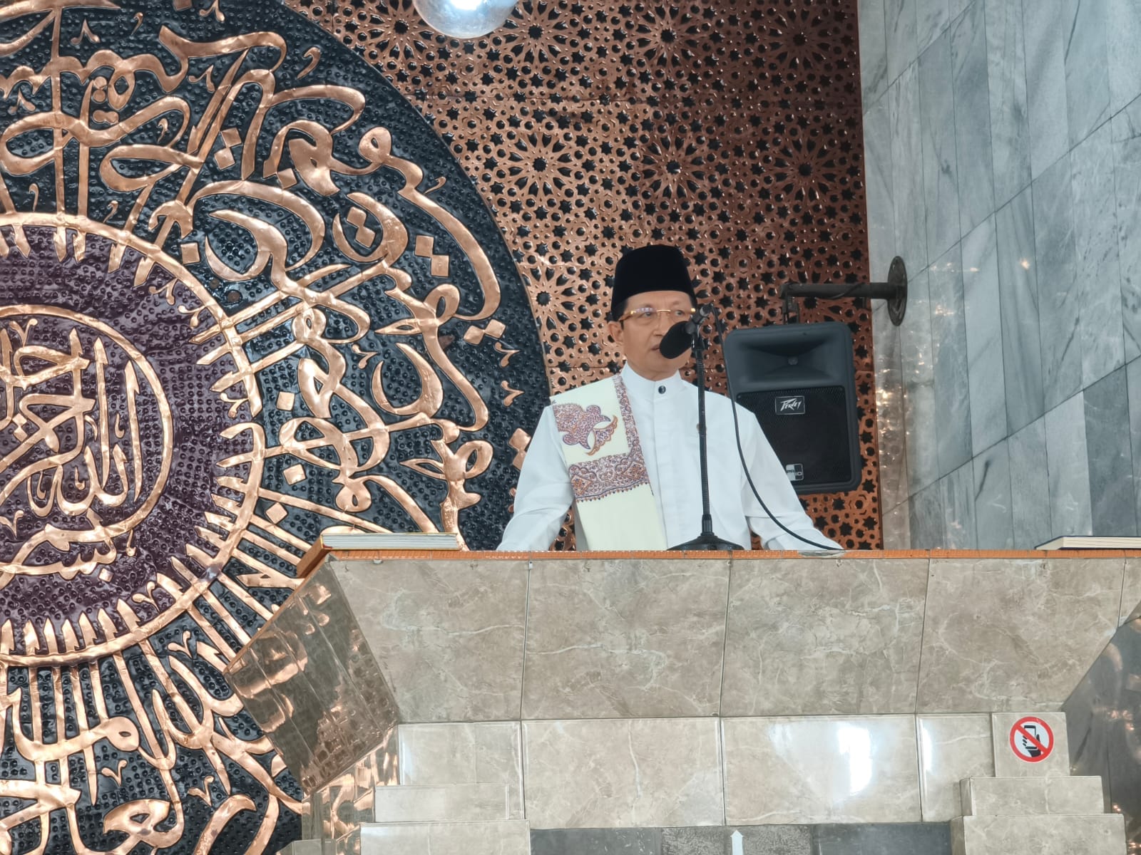 Dalam kesempatan tersebut, Menteri Agama bertindak sebagai imam sekaligus khatib di hadapan jamaah yang memadati masjid. Khotbah yang disampaikan tidak sekadar normatif, tetapi menghadirkan refleksi mendalam melalui kisah klasik dalam sejarah Islam, yakni peristiwa pergantian mimbar Rasulullah SAW.