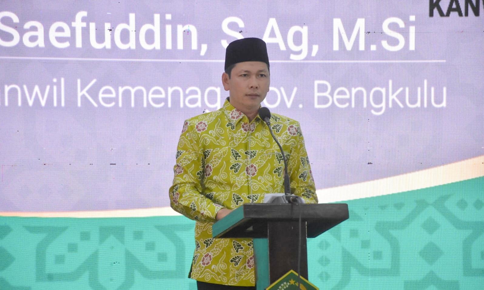 Pernyataan tersebut disampaikan Saefudin saat menyampaikan laporan pada pembukaan Rapat Kerja Wilayah (Rakerwil) Kanwil Kemenag Provinsi Bengkulu, Jumat (24/4/2026).