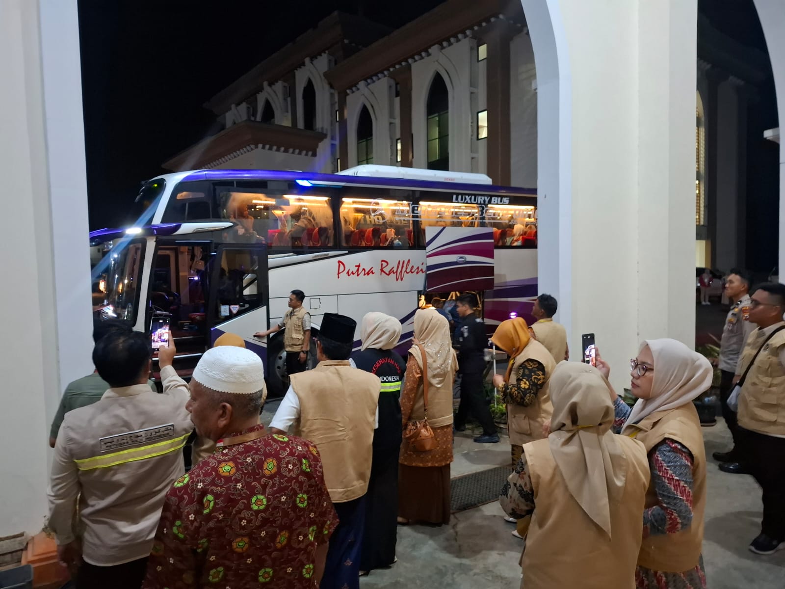 Sejak pukul 17.00 WIB, para CJH telah berkumpul di Masjid Merah Putih untuk menjalani proses pengecekan jumlah dan kesiapan sebelum diberangkatkan. Selanjutnya, seluruh jamaah diarahkan menuju Pendopo Merah Putih untuk mengikuti prosesi pelepasan secara simbolis.