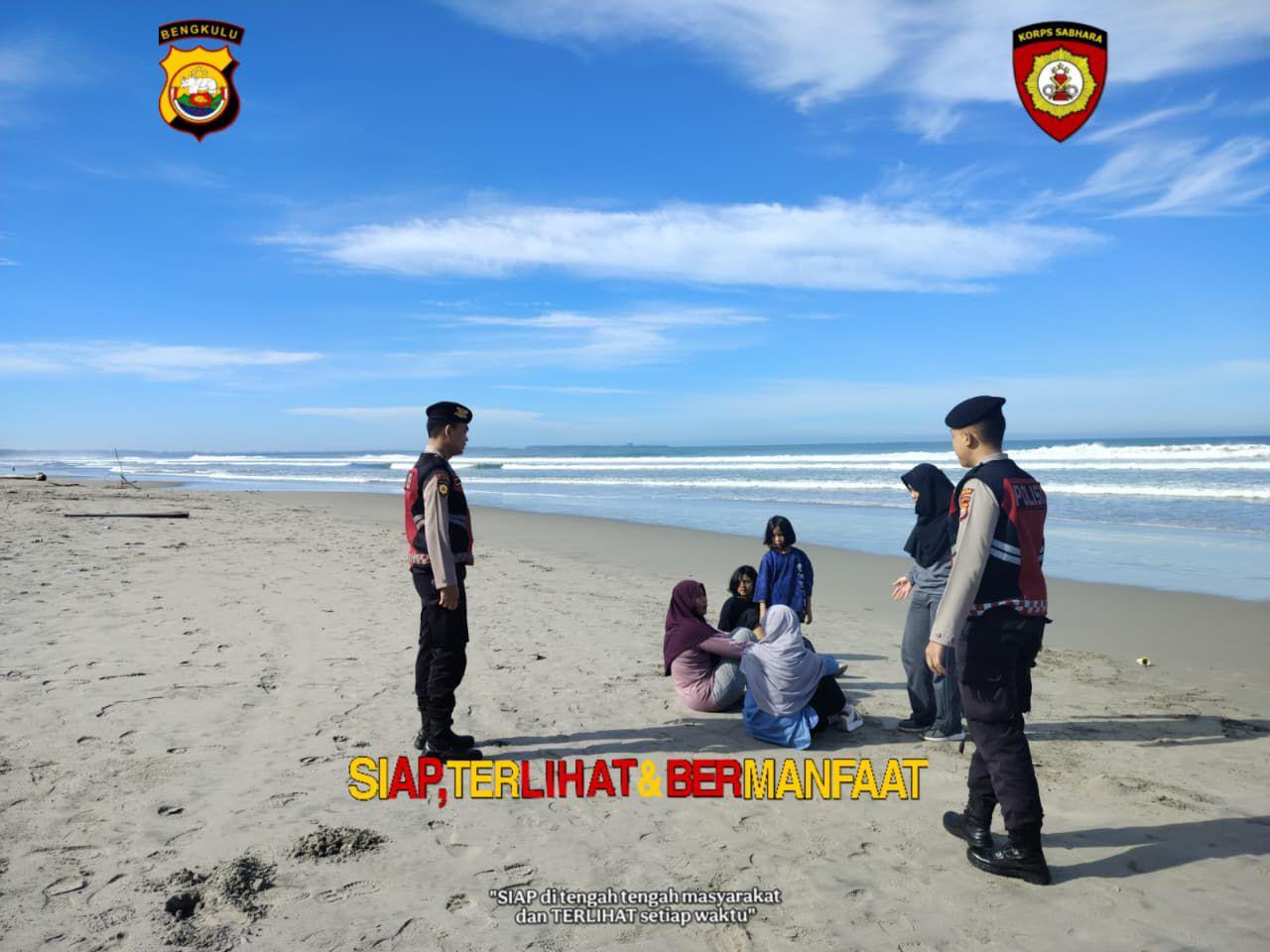Selain itu, petugas juga melakukan sambang dialogis dengan masyarakat dan pengunjung pantai, serta menyampaikan imbauan kamtibmas agar tetap waspada terhadap potensi gangguan keamanan, termasuk menjaga barang bawaan dan keselamatan saat beraktivitas di sekitar pantai.