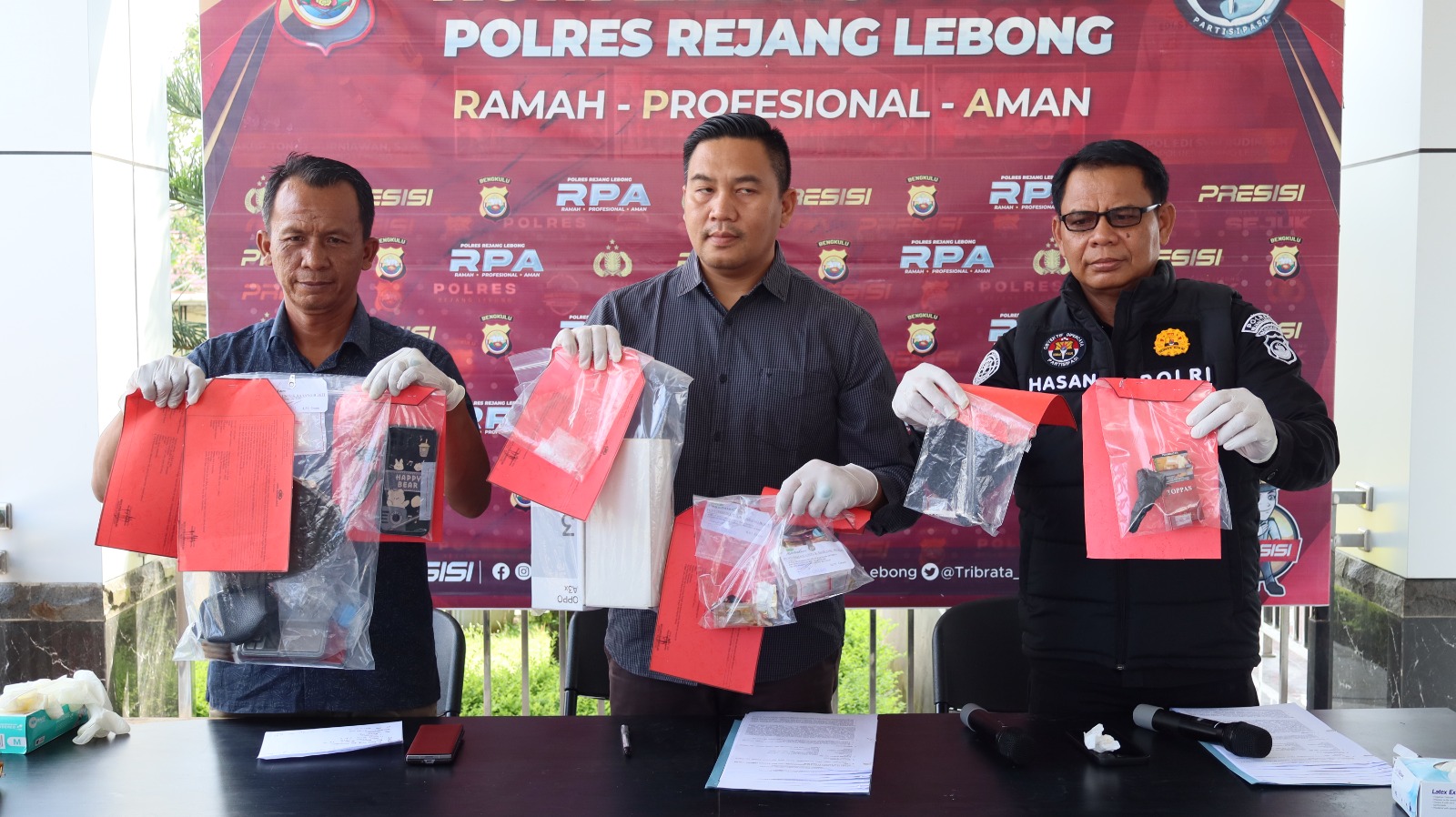 Dari tangan para tersangka, petugas turut mengamankan sejumlah barang bukti yang berkaitan dengan tindak pidana narkotika. Seluruh tersangka saat ini telah diamankan di Mapolres Rejang Lebong guna menjalani proses hukum lebih lanjut.